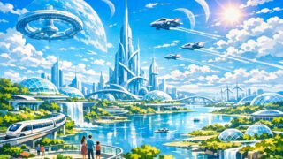 マスメディアが人類の未来として私たちに描かせようとする世界はこんなです。この画像はMicrosoft Copilotで生成しました。商標・肖像権は含みません。映画やドラマには常にこんな感じの未来が描かれます。でも!面倒なことは全部AIに任せ...